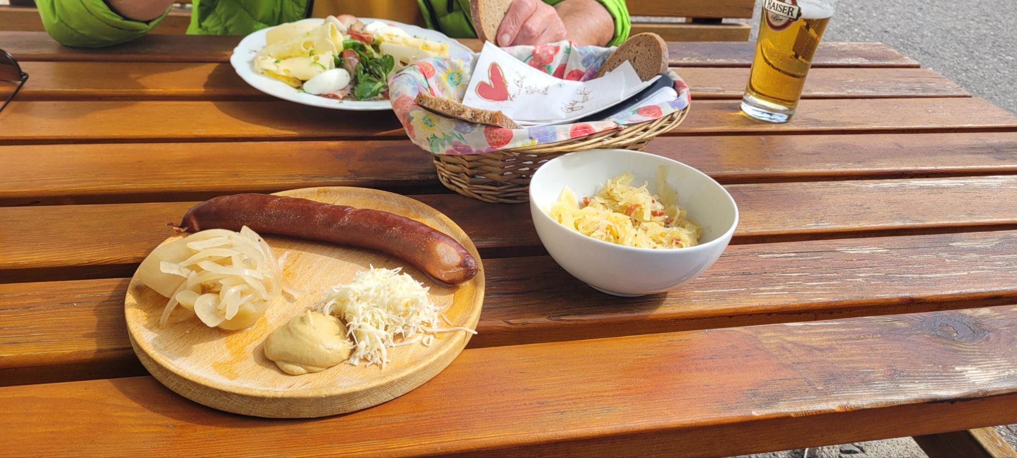 8:30 holte er mich vom Bhf Traisen ab, und wir starteten vom Knedelhof unsere Tour.