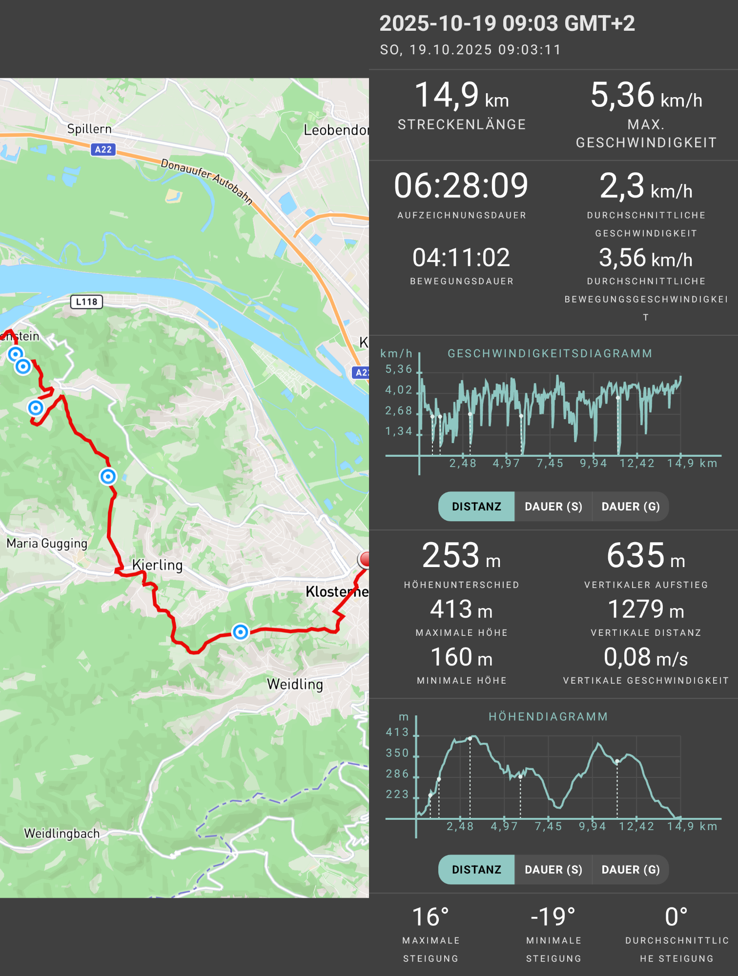 In Heiligenstadt tragen wir uns in der S40 und führen gemeinsam bis Greifenstein. Zuerst ging es bissl schattig durch den Wald, dann kamen wir doch auch auf sonnigere Wege 🤩