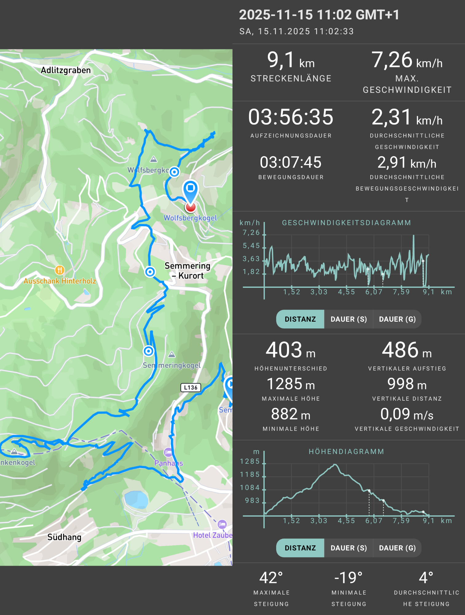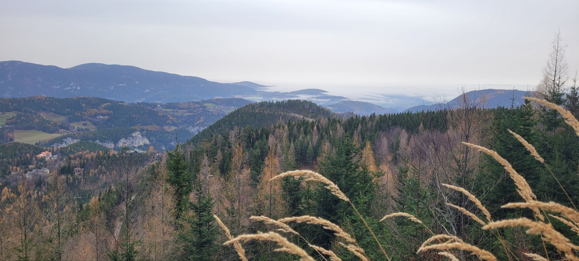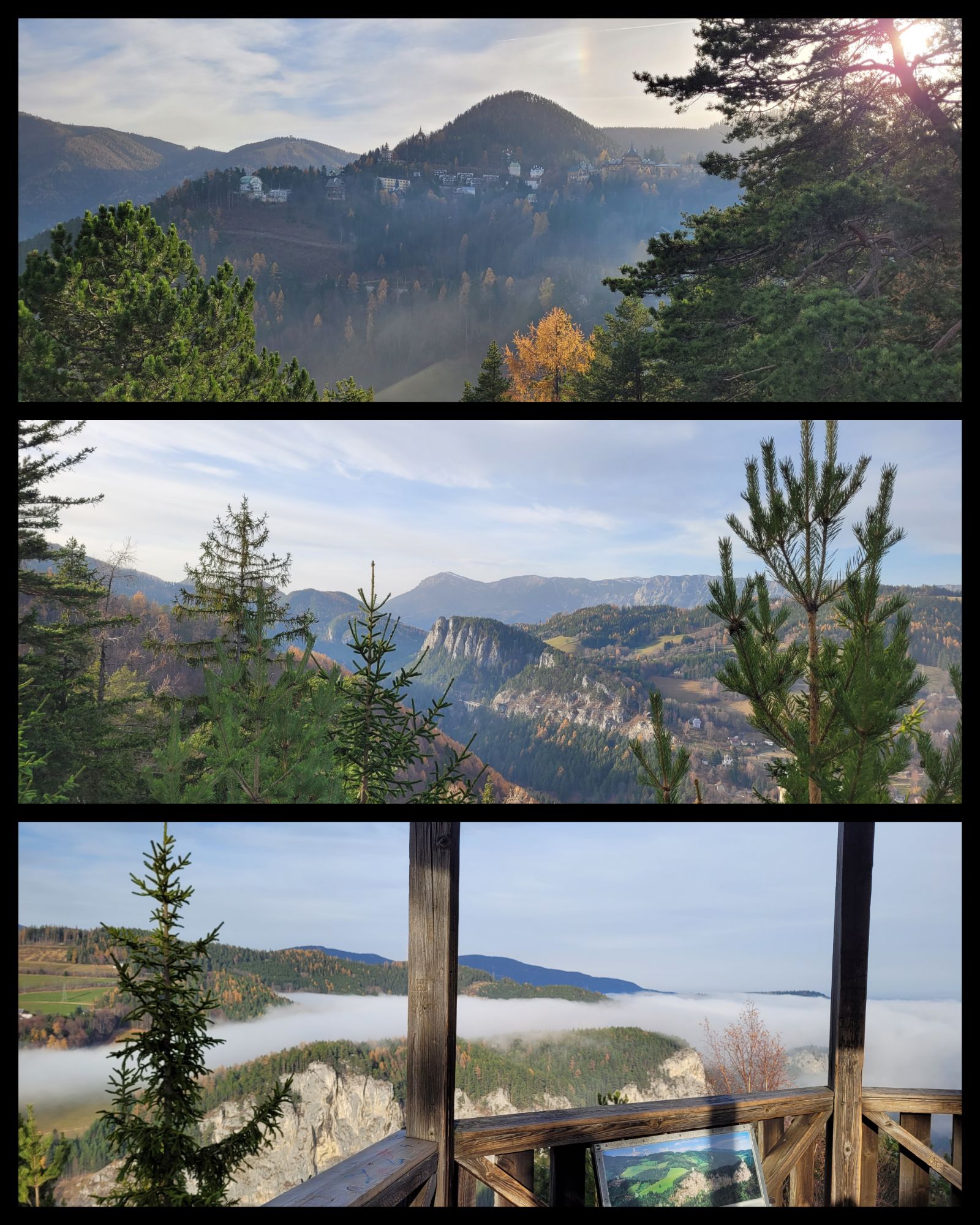 War auf der Suche nach Sonne… Wien war im Nebel, man muss auffi. Ob ich die Steigung (~ 1km/100hm) schaff – mal schauen – zur Not, gäbe es ja auch den Panoramaweg 🤷🏻♀️ geplant ist’s, auf diebPinkenkogelrunde zu gehen…