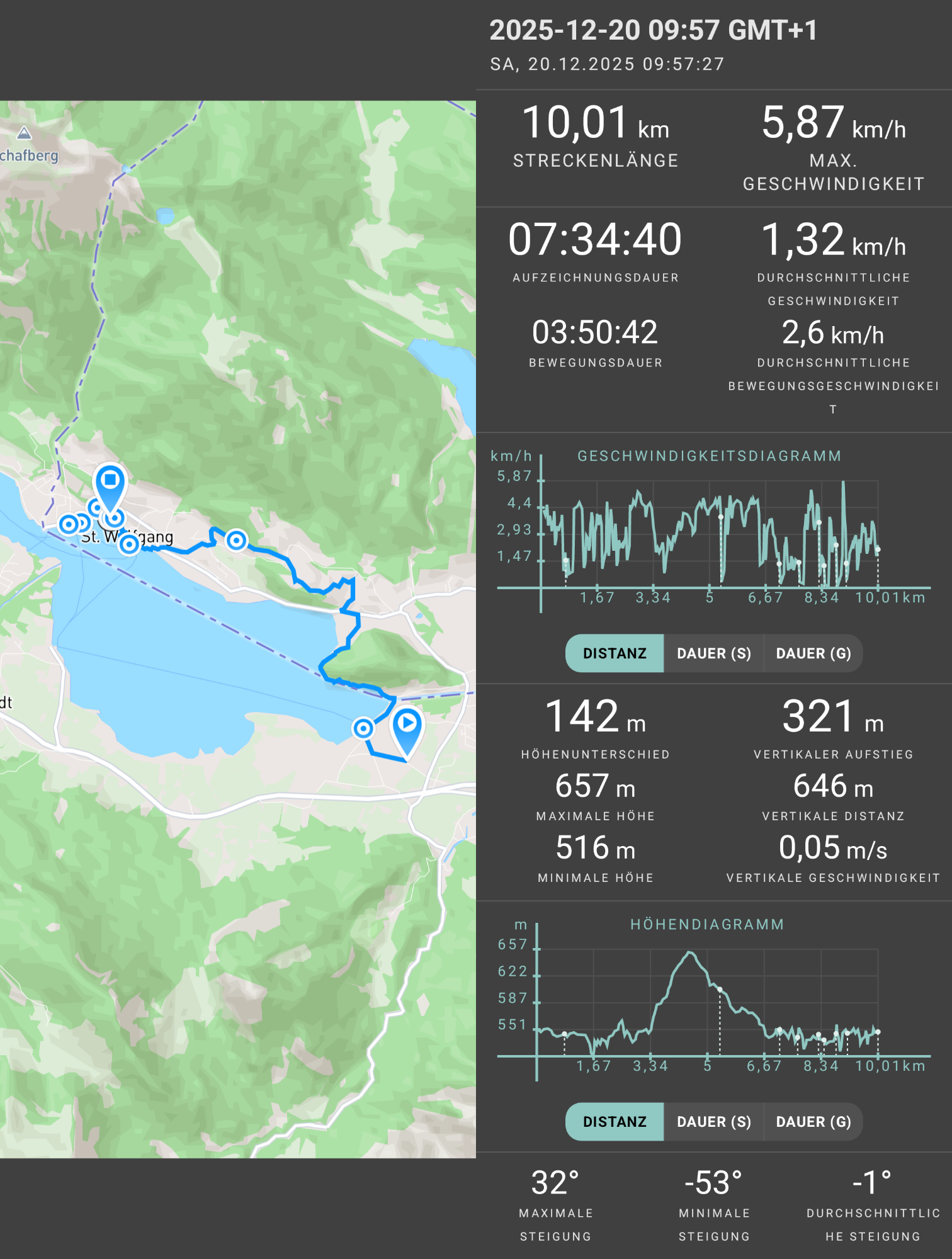 Und jetzt ( 10:30 ) gehe ich auf der Sonnenseite bis St Wolfgang zu Fuß.